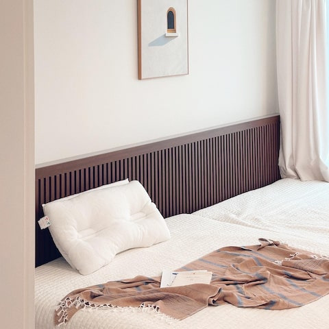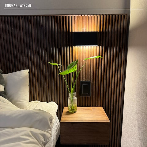 템바보드로 어떻게 꾸미면 아늑한 느낌의 침실로 만들 수 있는지 몇가지만 얘기해줄게. 우선, 침대 헤드에 템바보드를 설치해보는 거야. 이렇게 하면 침대가 더욱 돋보이고, 아늑한 분위기를 연출할 수 있어.